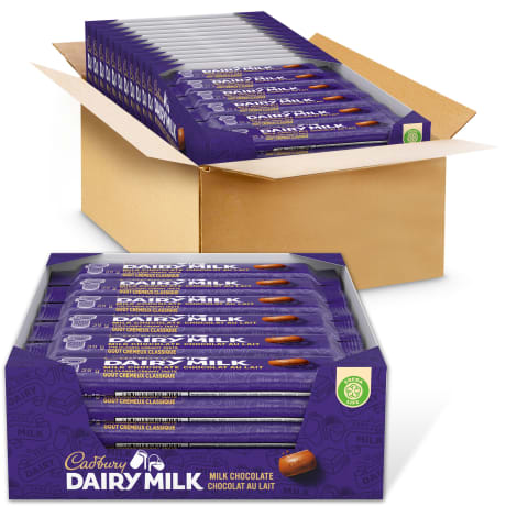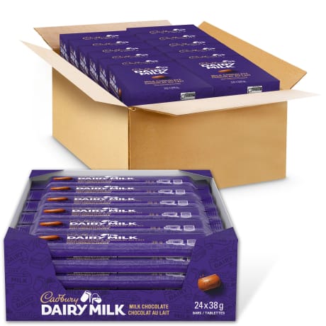 Enjoy the great taste and quality of CADBURY DAIRY MILK Milk Chocolate Bar. Compact and convenient, CADBURY DAIRY MILK Milk Chocolate Bars are easy to bring along for sharing on-the-go, a mid-morning break, or whenever you’re craving a little escape. The tray of 24 chocolate bars makes it simple to have a relaxing moment at any time of day.